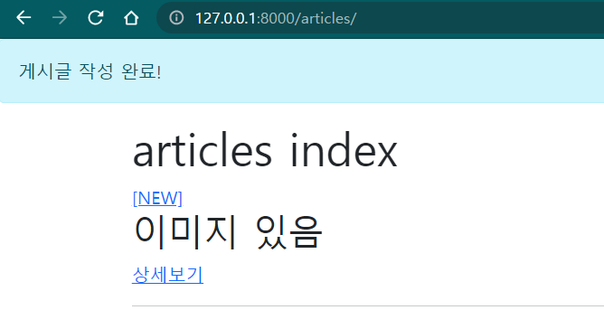 글 생성 시에 info 태그의 '게시글 작성 완료!' 메시지 출력