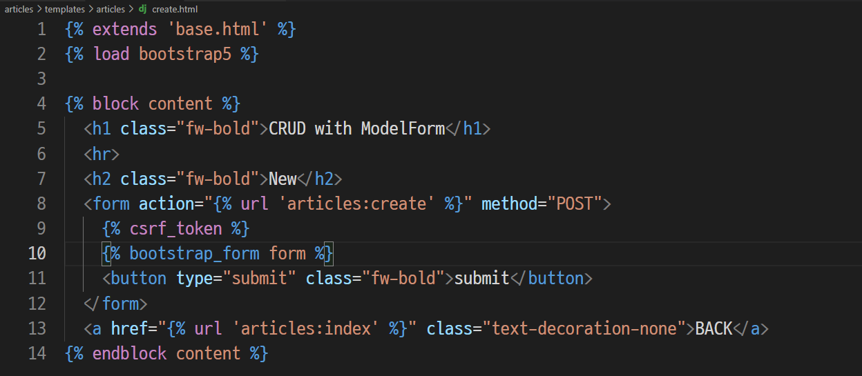 - forms 파일에서 ArticleForm 클래스를 가져온다.