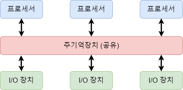 - 주기억장치를 공유하여 사용하는 방식